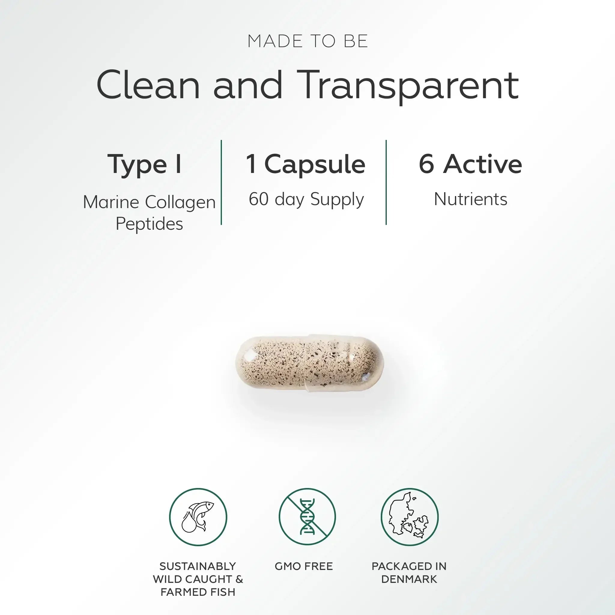 ren og praktisk kapsel, der samler kollagen, planter og nøje udvalgte mikronæringsstoffer.