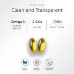 • Plant-based Omega-3 sourced from algae, not fish.