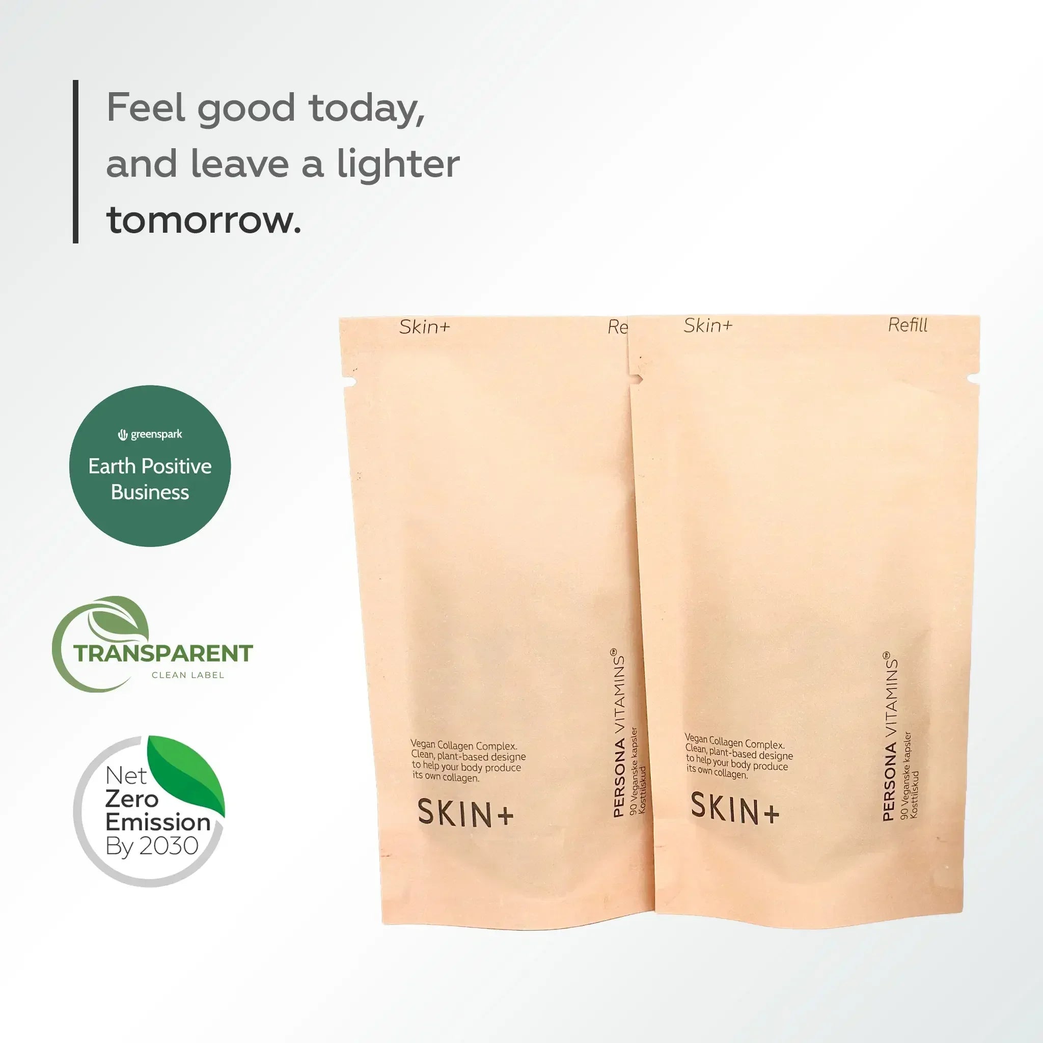 Sund, strålende hud starter indefra. Når vi bliver ældre, falder det naturlige kollagen, og dagligdagen — sol, stress og miljø — kan få huden til at føles træt og mindre smidig. Derfor kombinerer denne formel C-vitamin med en vegansk kollagenblanding, hyaluronsyre og planteekstrakter for at hjælpe din hud med at forblive glat, hydreret og støttet indefra og ud.